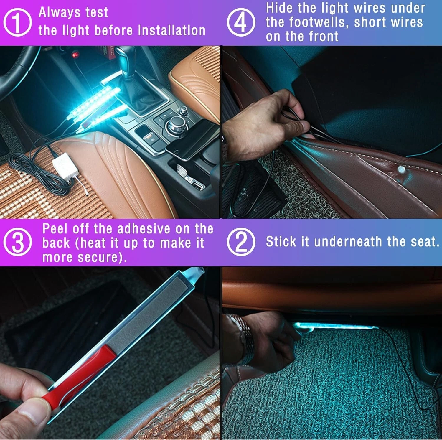 - Facile da installare e compatibile: La luce ambientale dell'automobile adotta il design universale nascosto del cablaggio ed è fissata con la forte colla 3M. La compatibilità estesa dei cavi assicura che sia adatta a diversi modelli di veicoli, mentre le quattro strisce luminose LED sono facili da installare e nascondere, mantenendo il veicolo ordinato e ordinato.