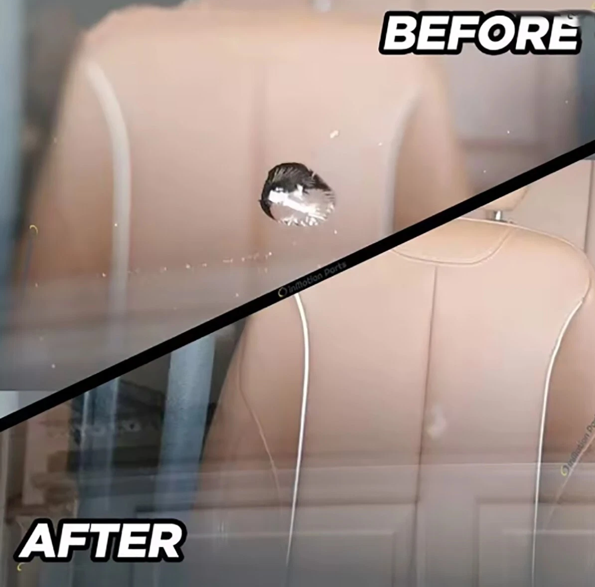 - NB: Funziona su rotture a stella, a occhio, combinate, trucioli e crepe. Per risultati ottimali, eseguire la riparazione il prima possibile ed evitare esposizione al sole fino alla fase finale.