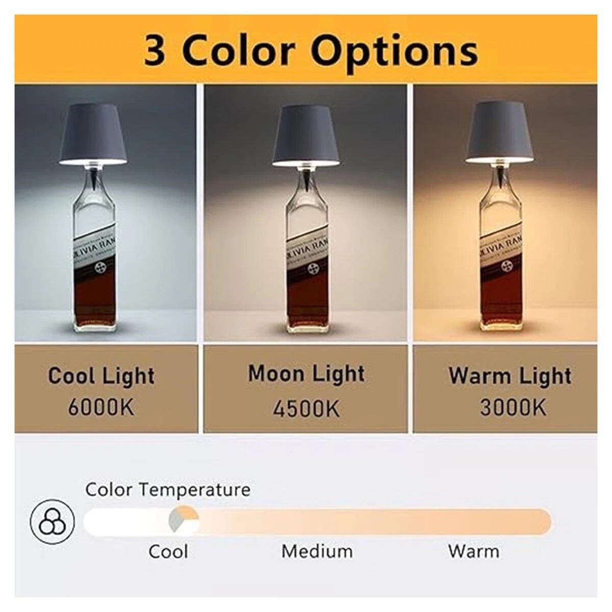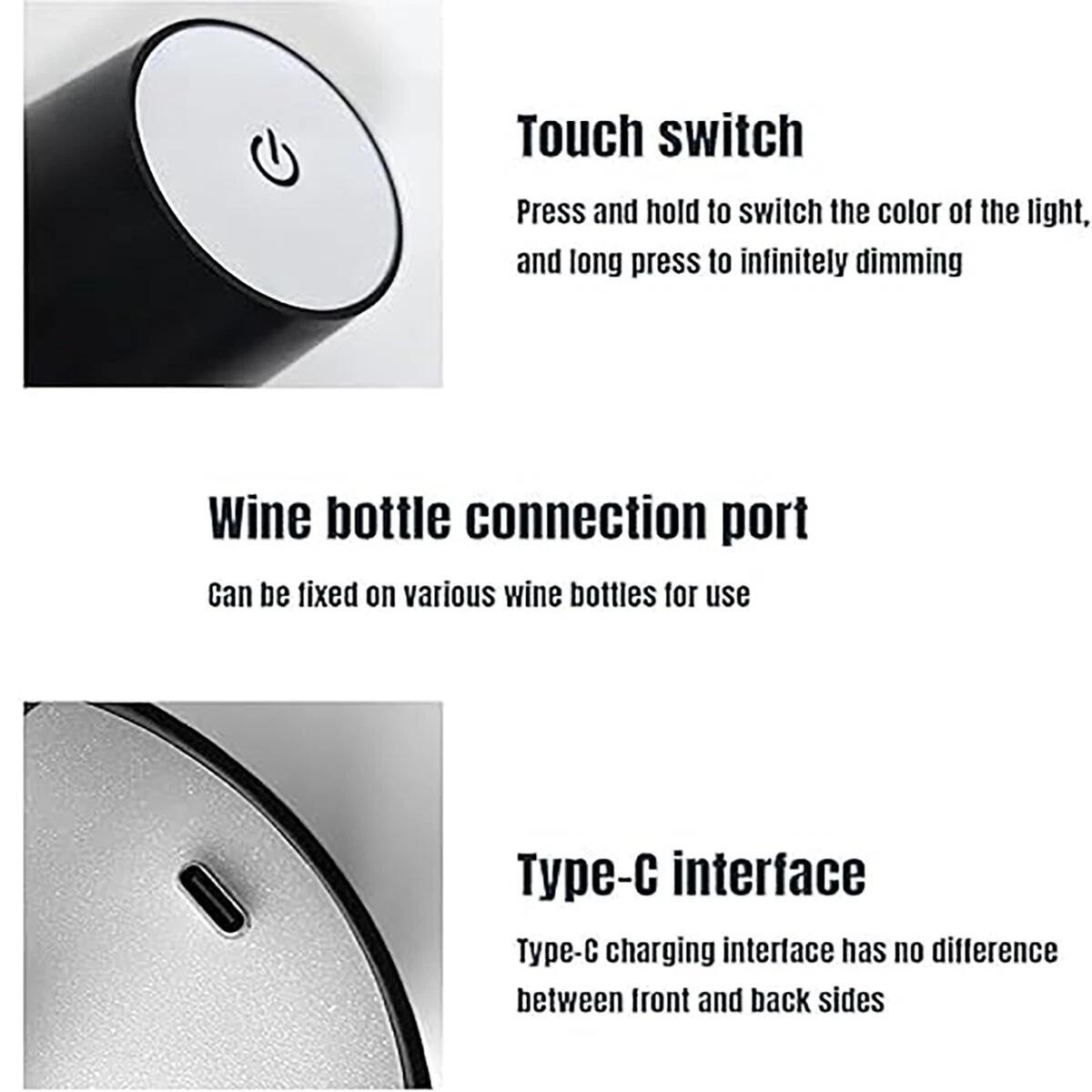Lampada led da bottiglia progettata per essere inserita nel collo di bottiglie in vetro, trasformandole in una lampada da tavolo decorativa e funzionale. Ideale per creare luce d’atmosfera su tavoli, banconi e superfici d’appoggio, può essere utilizzata in ambienti interni ed esterni come casa, ristoranti, bar, terrazze o campeggio. Il funzionamento a batteria ricaricabile consente l’uso senza cavi, mentre il comando touch permette di gestire accensione, tonalità della luce e intensità in modo pratico.