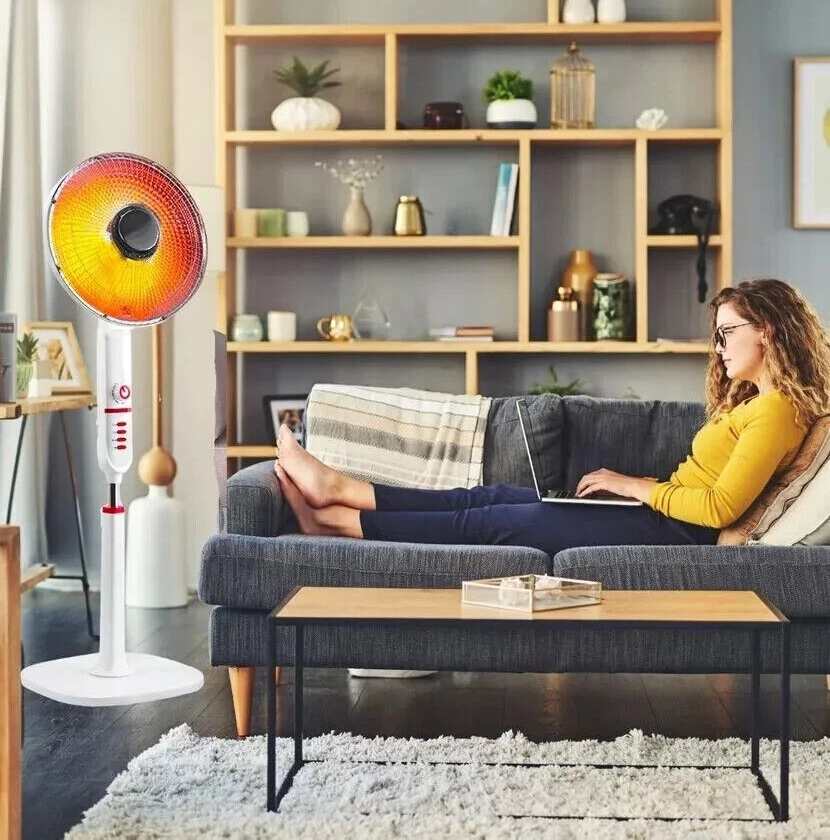 Stufa elettrica al carbonio oscillante con base a piantana.