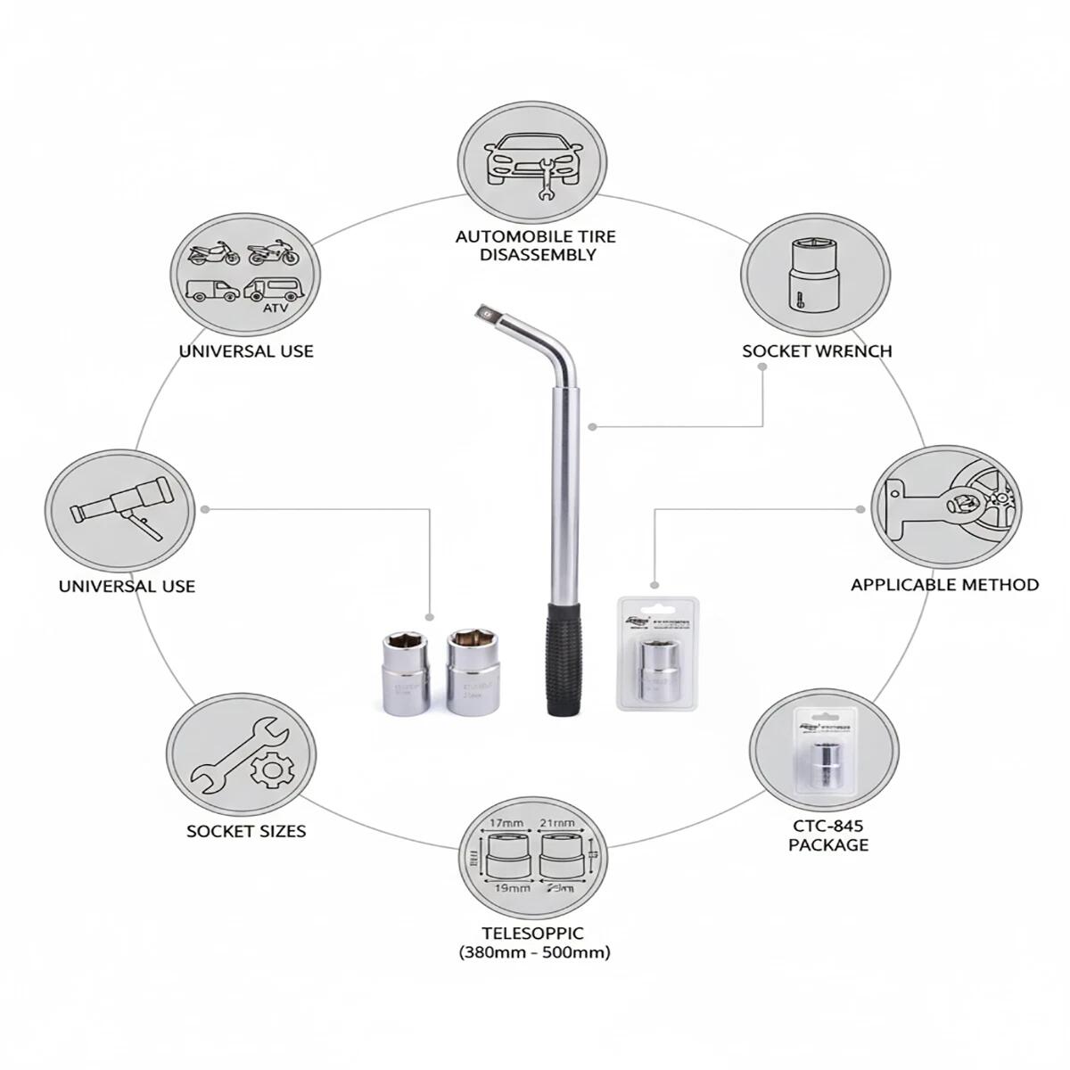 La chiave smontaruote telescopica multifunzione è lo strumento ideale per smontare e serrare i bulloni delle ruote in modo semplice, rapido e sicuro. Grazie al manico telescopico regolabile, consente di applicare una maggiore leva riducendo lo sforzo, rendendola perfetta per emergenze stradali, manutenzione ordinaria e utilizzo professionale. Realizzata in acciaio resistente, è adatta per auto, moto, van e veicoli commerciali. Caratteristiche principali: Tipologia: Chiave smontaruote telescopica multifunzione Bussole incluse: 17 mm – 19 mm – 21 mm – 23 mm Materiale: Acciaio ad alta resistenza Impugnatura: Antiscivolo ergonomica Funzione: Smontaggio e serraggio bulloni ruote Maggiore leva per ridurre lo sforzo Utilizzo: Auto, moto, van, camper, veicoli commerciali Ideale per emergenze e manutenzione La confezione contiene: Nr.1 Chiave telescopica multifunzione Nr.2 Bussole doppie (17/19 mm – 21/23 mm)